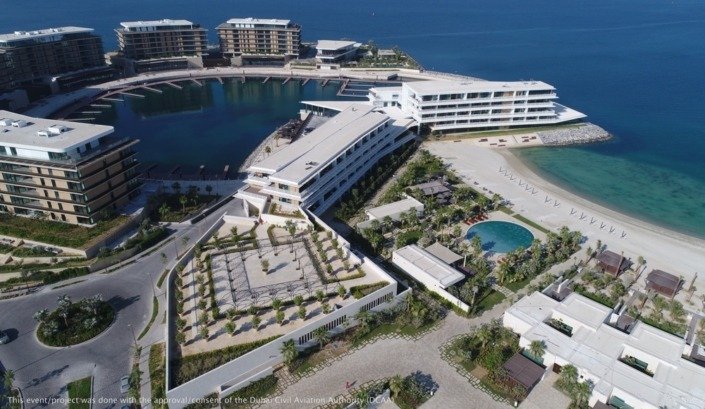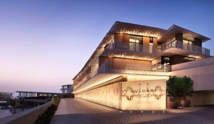 Bvlgari Resort Hotel & Marina Village is located off the coast of Jumeirah Beach Road and features a distinguished five-star mixed-use development, sculpted in the shape of a titanic seahorse featuring retail, residential, hospitality and entertainment zones.