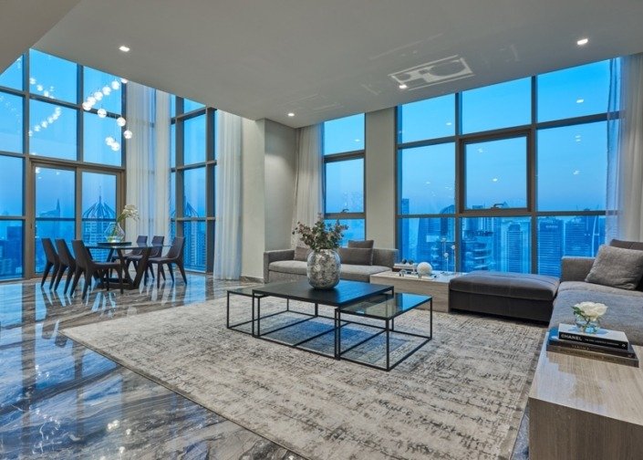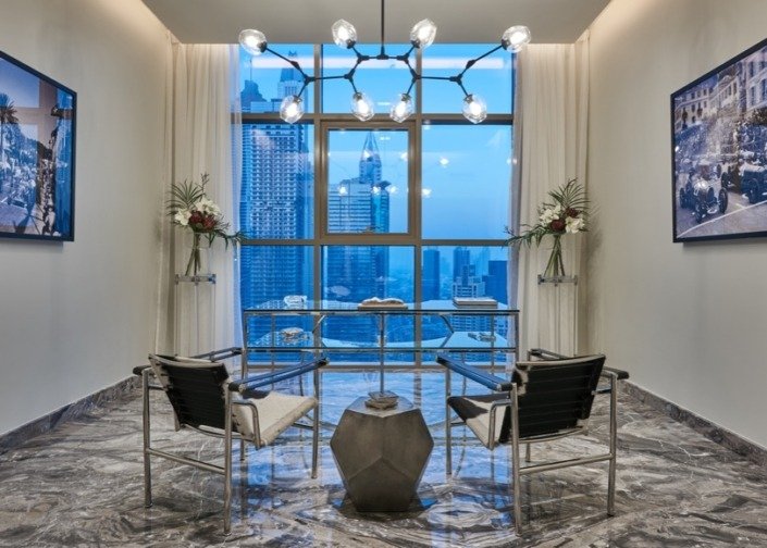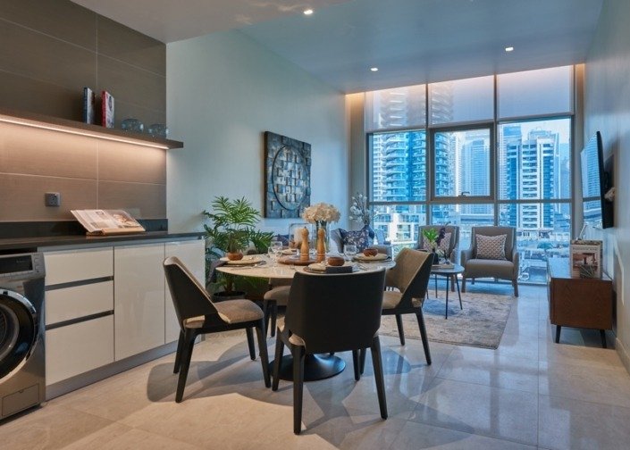 The building comprises of one, two and three-bedroom apartments including four duplex penthouses with marina views. No. 9 is located on the doorstep of the 5-star Grosvenor House Hotel and features a temperature-controlled pool, a gym and a children’s play area.