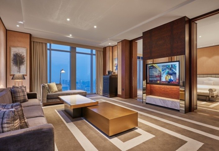 The Waldorf Astoria Dubai International Financial Centre, spans from the 18th floor to 55th of the Burj Daman Mixed Use Development, an ultra modern tower of offices and residences. The 5* hotel redefines luxury in Dubai. There is a residential feel with design elements inspired by early 1960’s New York.