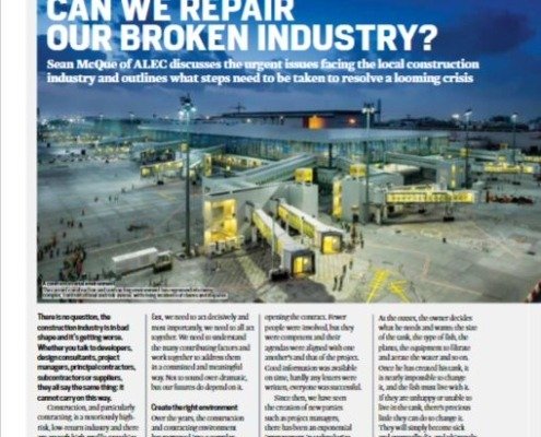 Sean McQue of ALEC discusses the urgent issues facing the local construction industry and outlines what steps need to be taken to resolve a looming crisis in Big Project ME’s expert voice column.